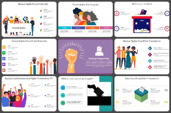 Our human rights and civil rights slides are particularly designed with precision, ensuring that your presentations encapsulate the essence of these crucial topics. For those who aim to discuss niche subjects, we also offer templates on contemporary topics like online voting systems. Every template comes equipped with creative infographics, editable images, and text holders, making it simpler for you to customize them according to your content. Free slides are also available.
