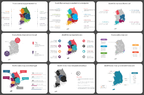 South Korea, a land rich in history, culture, and innovation, deserves a presentation that's just as exciting. Our South Korea map presentation templates will help you exhibit this fascinating country. Whether you're a business professional, educator, or travel enthusiast, these templates offer a powerful way to share your knowledge about South Korea in a clear and engaging way.