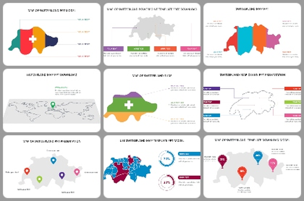 Using these presentations is a smart move for a few reasons. First off, maps make information easy to see and understand, which makes your presentation more interesting. You can also use them to plan out your trip to Switzerland or show different places you want to visit. If you're talking business, these maps can help you explain stuff like market potential or regional demographics in Switzerland. And, if you're teaching geography, they're perfect for bringing Switzerland to life in the classroom!