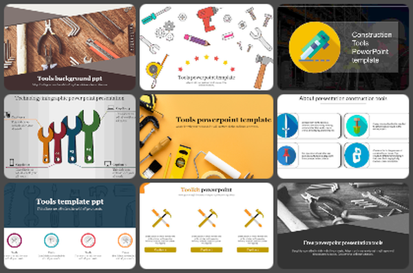 These Tools PowerPoint templates are the best slides to talk about using different tools like screws, spanners, drillers, hammers, screwdrivers, and so many others.
