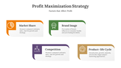 Profit Maximization Strategy is a fundamental concept in the business world, representing a comprehensive approach to optimizing a company's profits. This strategy involves a range of tactics, including cost reduction, price optimization, and resource allocation, all geared towards enhancing the bottom line. It's about achieving a delicate equilibrium between increasing revenues and minimizing costs while considering ethical and sustainability considerations. Whether you're a seasoned business leader or an aspiring entrepreneur, comprehending this concept is essential for long-term financial success. For those looking to communicate their Profit Maximization Strategies effectively, our PowerPoint template is the ideal solution. This template caters to business professionals, financial analysts, and entrepreneurs seeking to articulate their strategies with clarity and impact. It offers a visually appealing and customizable platform, making complex ideas accessible to the audience. This PowerPoint template is designed to save time, ensuring your presentations are impactful and professional. With fully editable slides and a variety of professionally designed elements, it provides the tools needed to confidently present your Profit Maximization Strategy. By utilizing this template, you empower your audience to understand your vision and take concrete steps towards financial success. Whether you're a seasoned pro or just starting your journey, this PowerPoint template is your key to effectively communicating the concept and achieving Profit Maximization through strategic, profitable, and ethical means.