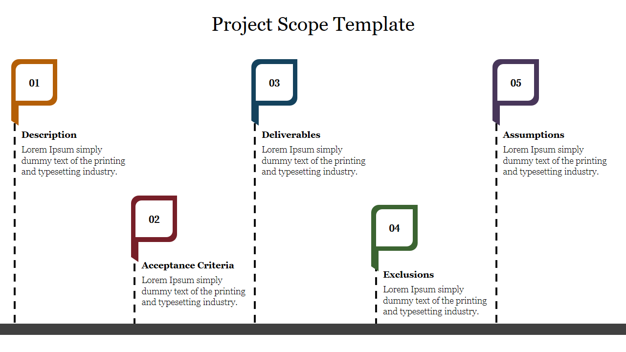 How about trying this Project presentation template for your business. The template is added with a flag design which The user can add with text in the given text area. The five node template can make a detailed project report on a specific business topic. The fully customized template will make the presentation attractive with user-friendly features. Grab now and impress your audience.