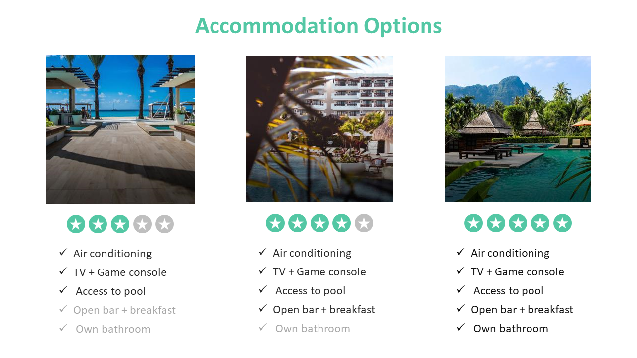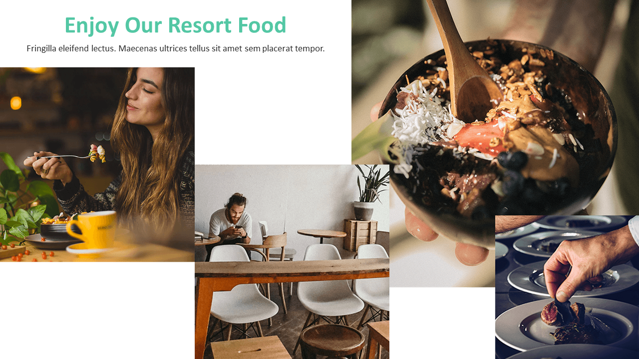 Present your accommodation choices, review, food, and pricing detail to your customers with our Resort PowerPoint Template Slide. You can highlight the packages, contact info, and benefits to make your presentation well-informed. In addition, you can showcase your Resort service and choices idea in a customer meeting or vacation business meeting. The