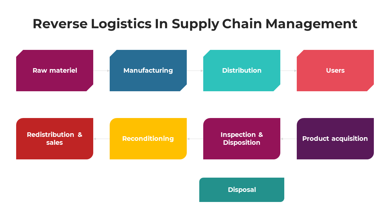 Reverse Supply Chain spotlights the strategic journey where products, post their primary lifecycle, are redirected from their final destination back to manufacturers for return, repair, remanufacturing, or recycling. With the rise of sustainable business practices, mastering this chain encompassing product returns, end-of-life management, and product recycling has become essential. Beyond its environmental benefits, this process stands as a key to unlock recovered value, optimizing resources and ensuring cost-effective operations. Tailored for supply chain aficionados, this template distills the complexities of the "Reverse Supply Chain", accentuating pivotal stages where businesses can reclaim value. As you navigate this comprehensive resource, attendees gain not just logistical insights but also a blueprint for a sustainable, economically viable future. Embrace this template to advocate for innovative, eco-friendly practices while boosting operational efficiency and resource optimization.