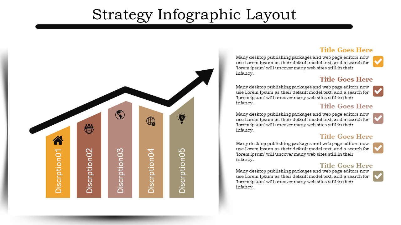 Take a visual journey through our dynamic bar chart slide. This presentation, with five carefully constructed symbols and distinct caption holders for each bar, brings your data to life. Each icon represents an important part of your sales plan, and the caption holders allow you to offer extra information for a more complete understanding.
