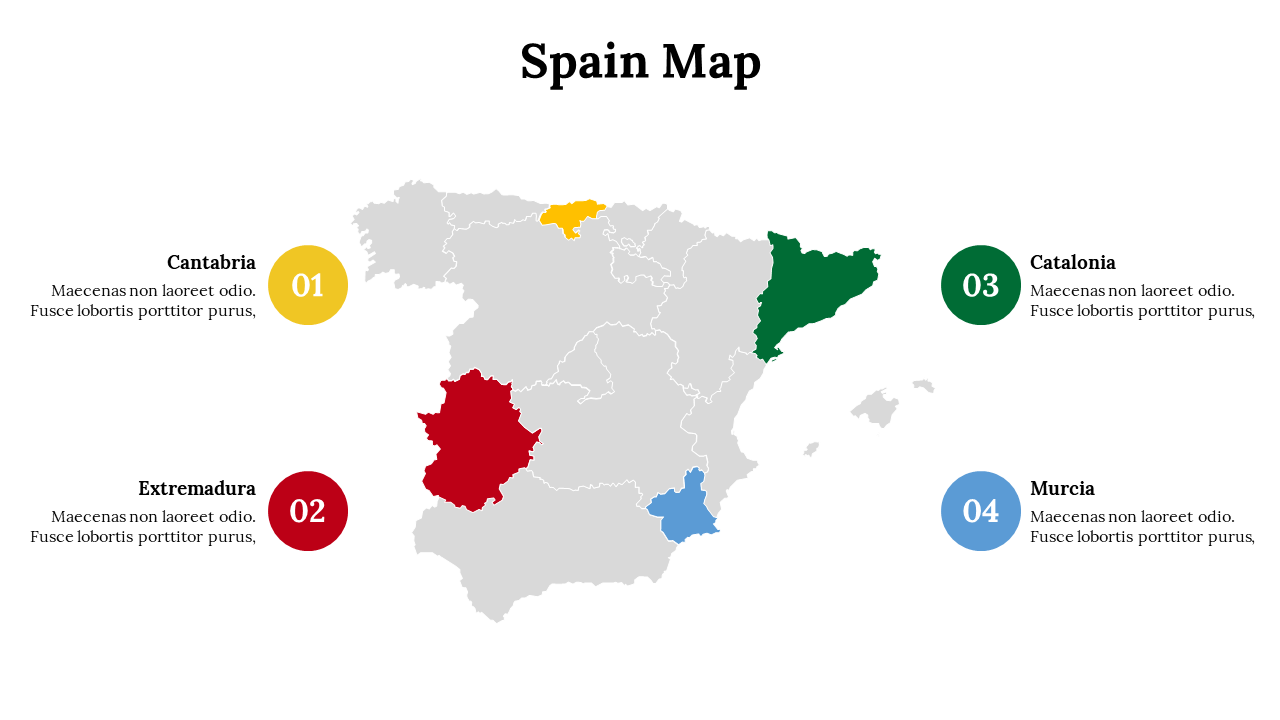 Spain is known for its food, Flamenco music, bullfights, literature, Moorish heritage, islands, wines, fruits, etc. Each place in Spain carries a specialty in them. The slide bundle given here consists of attractive map designs with particular regions highlighted to help you give a special mention about it. There are 16 slides that are packed with attributes that make your geography, business, and other themed presentation templates outstanding. There are places names mentioned for you as well which makes your creation process effortless. The price tag for this slide bundle is affordable as well. So, without any doubt get hold of this template.