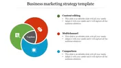 Strategy - see distant things as if they were near and take an alienated view of close things! Take direction! Make your tactics effective for your business and trading to move in an innovative path! There are four sections in this stunning Strategy template that resemble purple rainbows. You can alter the sample texts and add your software development-related information. With this highly customizable template, you may alter the slide's design to match the subject matter of your presentation. Do you know why there is a knight on the slide? Be like a knight's ability to move in unexpected ways in chess!