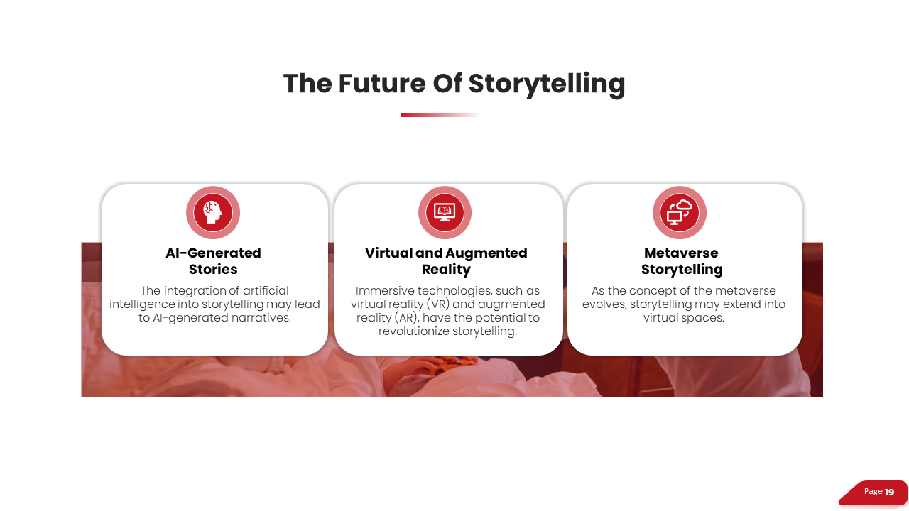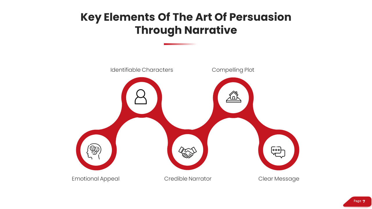 Explore The Power of Storytelling, a mesmerizing journey where narratives weave emotional and connective tapestries, transcending mere communication to become a global heart-and-mind bridge. In today’s information-centric world, storytelling rises as a crucial tool, transforming complex ideas into relatable experiences and unifying individuals through shared emotions and perspectives. Its significant role spans across education, business, and marketing, turning ordinary messages into extraordinary impacts. Echoing this art, we introduce a versatile PowerPoint template, perfect for marketers, educators, business leaders, and storytellers. This tool, with its sophisticated red theme and fully editable slides, marries aesthetic appeal with functionality, catering to a wide range of users from professionals to novices in presentation design. It facilitates crafting and conveying impactful narratives, ensuring presentations are not only engaging but also forge a strong emotional connection with audiences. The template enhances audience engagement, ensures memorable presentations, and deepens the understanding of complex concepts, empowering users to infuse the magic of storytelling into their communication and presentation strategies.