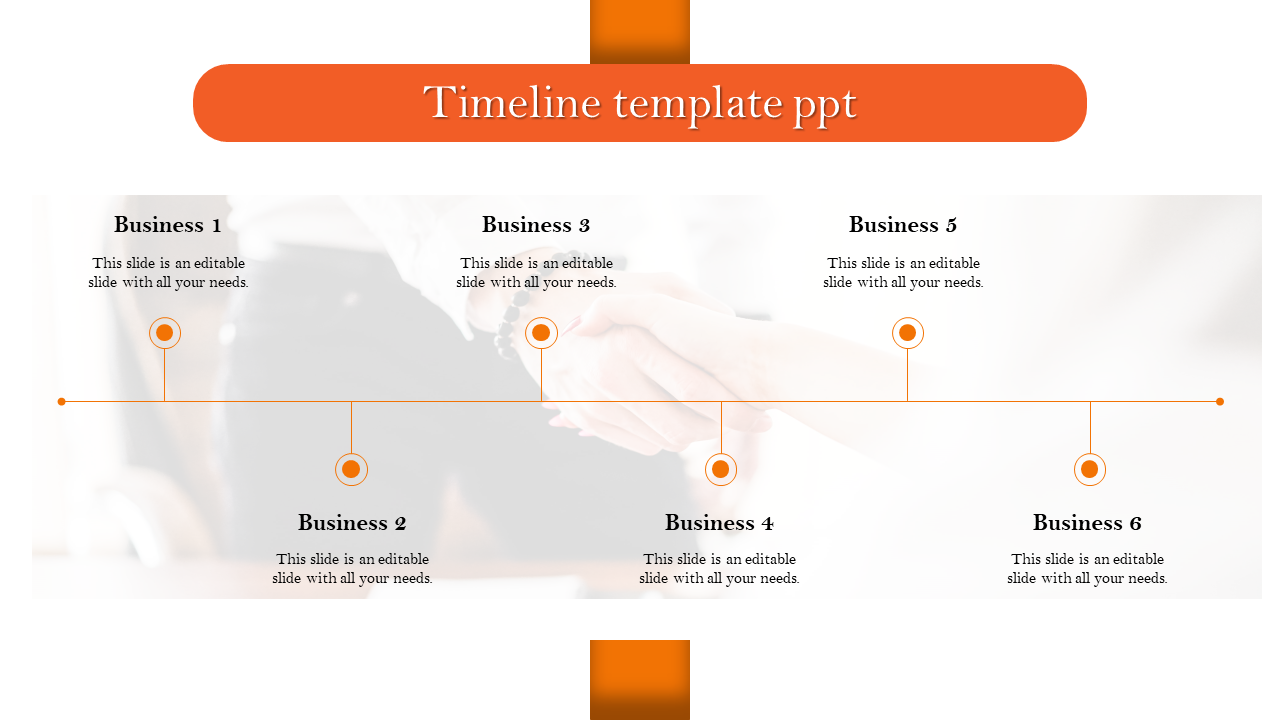 If you're a business person looking for the best slide for your projects and business process, here is the best slide for your quest. This Elegant Business Timeline Presentation Template is an excellent option for your unique presentations. It depicts the linear growth of the business through sequential stages. The six nodes are horizontally set with spacious nodes space. You can use this template to illustrate the chronological events or future forecasts by examining the current and past situations of the enterprise. Download now for quick timeline PPTs.