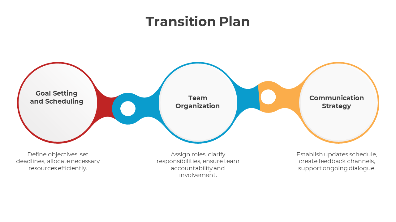 Transition plans are essential roadmaps that guide individuals, teams, or organizations through significant changes or transitions. They outline the steps, strategies, and timelines required to smoothly navigate from one state or process to another. Whether it's implementing new technologies, organizational restructuring, or changes in leadership, transition plans ensure that transitions are managed effectively, minimizing disruptions and maximizing success.