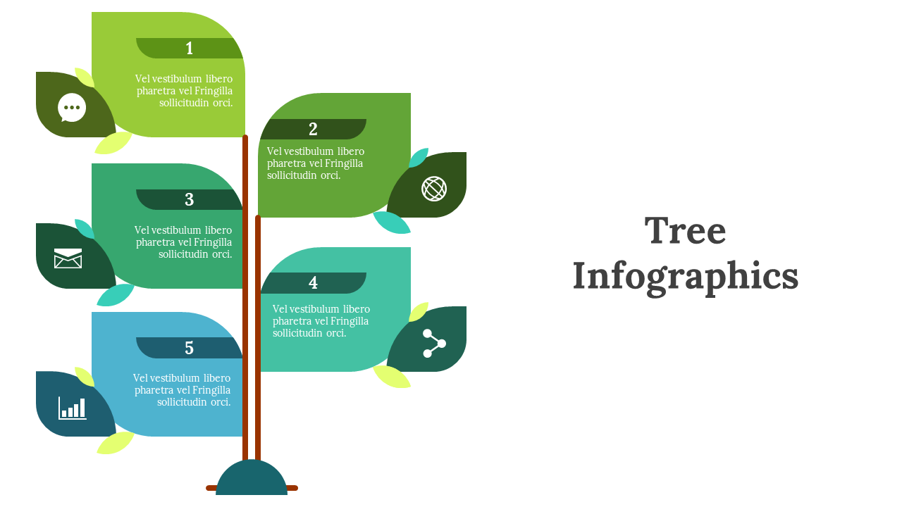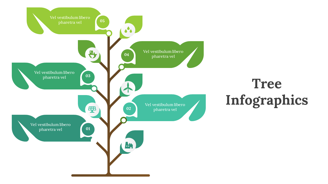 A wonderful option for business presentations is the tree infographics PowerPoint template. This template is useful to make it simple for you to produce displays that are engaging, appealing, and have a creative and polished appearance. Your audience will be impressed by this template's sleek, modern style. You can use a variety of infographic components, like graphs, charts, tables, and maps, to show your arguments and make them stand out in your slides. The template also comes with 36 expertly prepared slides for your display's opening and closing slides, as well as any topics you might wish to cover. Users can resize or shape the diagram and PowerPoint objects with just a few clicks. Try now!