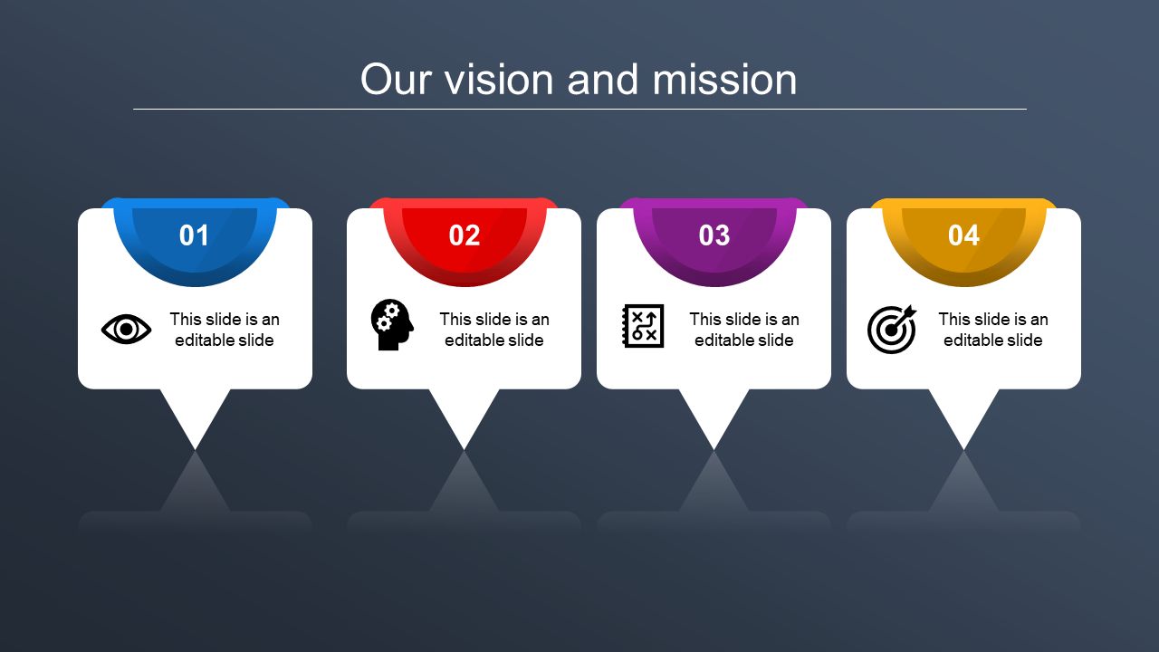 Illuminate your path with our Vision and Mission PowerPoint Template. Guided by four vibrant icons, craft a compelling narrative that unveils your aspirations and purpose. Each step shines with an innovative design, empowering you to deliver a message that resonates.