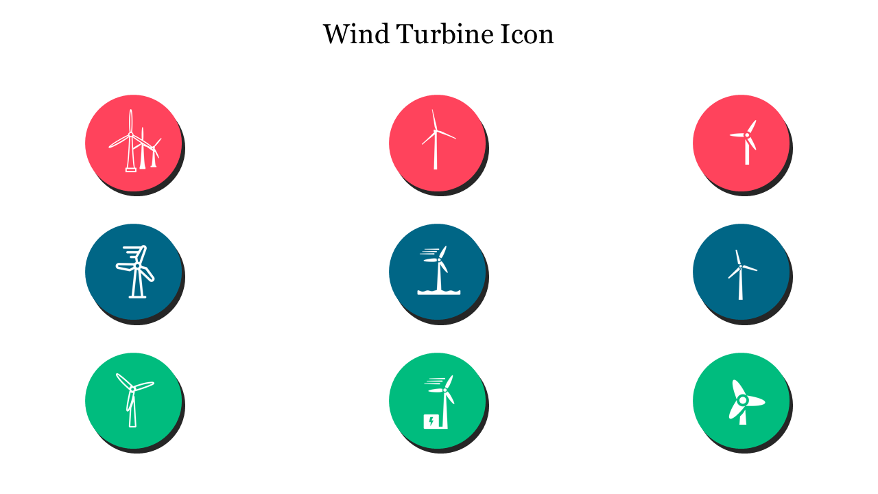 The Wind Turbine Icon PowerPoint Template includes nine multicolor icons of wind turbines. The icons are placed inside the colorful circles. It has a clean layout that is easy to follow. It can be used to discuss the environmental benefits of windmills or solar energy farms. If you're planning a meeting on renewable energy, you can use this theme to discuss the requirements and advantages of these resources.