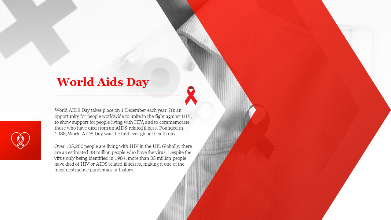 Download this World Aids Day Presentation Template Slide for your compelling presentation. The template is given with an arrow design that shows the AIDS day presentation.