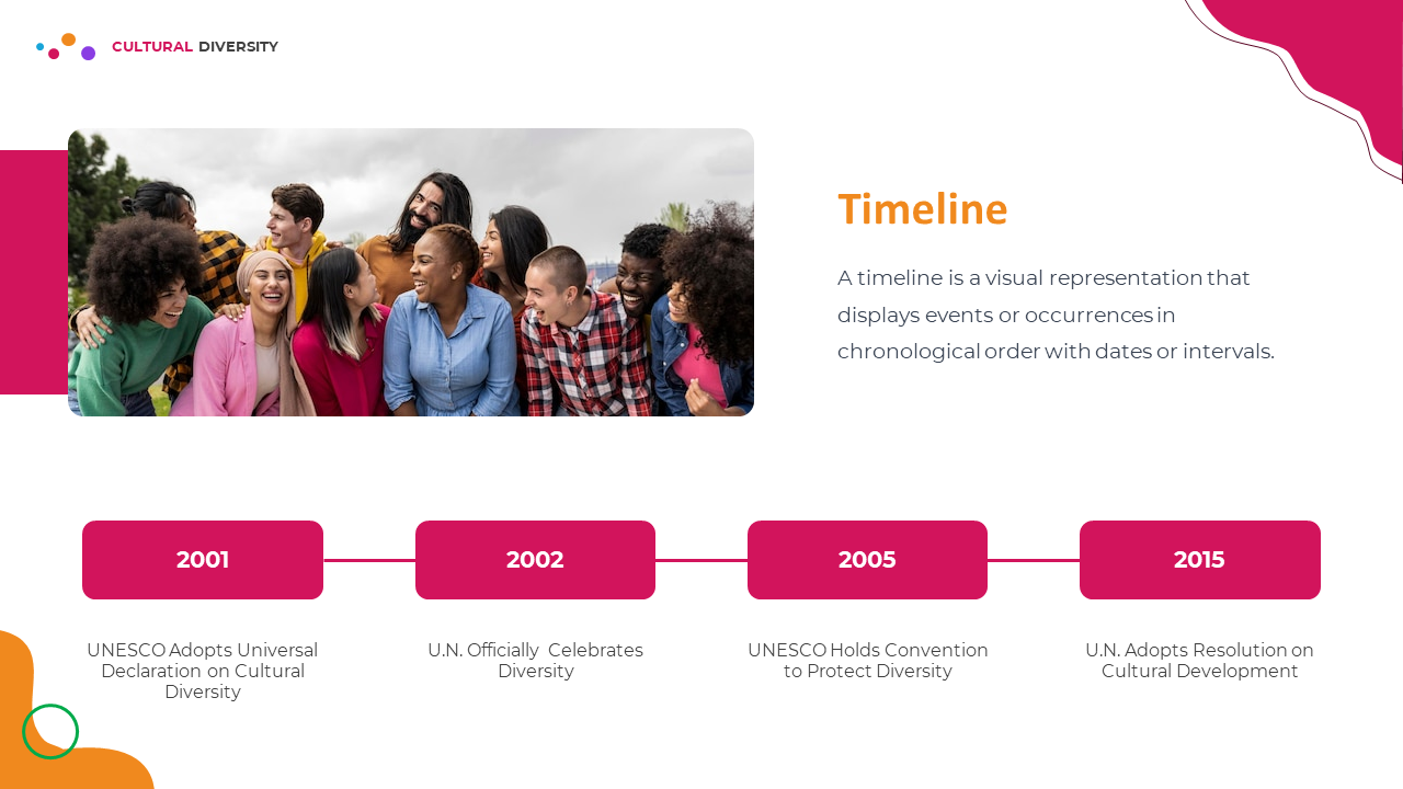 World Day for Cultural Diversity for Dialogue and Development, often referred to as Cultural Diversity Day or World Diversity Day, illuminates the vibrant tapestry of cultures that enrich our global landscape. Observed on May 21st each year, this momentous occasion is a heartfelt celebration of diversity's beauty and its profound potential to unite and enhance societies worldwide. It underscores the importance of understanding, appreciating, and inclusively embracing diverse cultures, traditions, and viewpoints, fostering unity and peace on a global scale. Cultural Diversity Day serves as a poignant reminder of the pivotal role cultural diversity plays in building harmonious and prosperous societies. It invites us to recognize the transformative power of dialogue, development, and collaboration as we navigate our shared journey as a diverse human family. Utilize this template to effectively convey the significance of cultural diversity, educate your audience, and inspire unity and understanding, ultimately celebrating the rich tapestry of humanity on World Day for Cultural Diversity for Dialogue and Development.