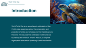 Did you know that World Turtle Day is celebrated annually on May 23rd to raise awareness about the importance of turtle conservation? Our presentation offers a fascinating insight into the world of turtles, with colorful images showcasing a variety of different types of turtles. Learn about the unique characteristics of these amazing creatures, from their habitats to their behaviors, and discover the challenges facing turtle populations worldwide. With informative content and captivating visuals, our presentation is the perfect way to celebrate World Turtle Day and learn more about these incredible animals. Purchase our presentation today and dive into the wonderful world of turtles!